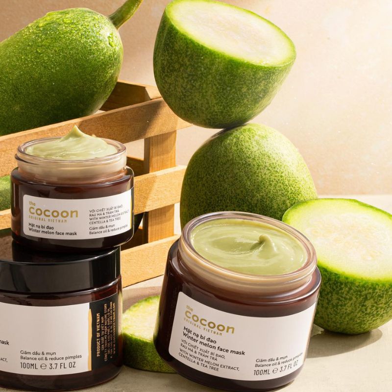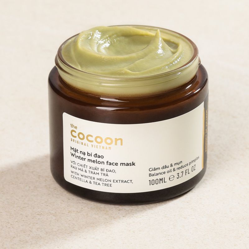 Mặt nạ bí đao Cocoon là "người em" thứ 4 trong bộ sản phẩm dưỡng da từ Bí Đao của Cocoon. Sản phẩm có thành phần chủ đạo từ bí đao giúp giảm dầu, mụn, thuần chay thanh mát, bổ sung thêm rau má và tinh dầu tràm trà giúp giảm nhờn, làm thông thoáng lỗ chân lông, cải thiện nhanh tình trạng mụn, làm dịu vết đỏ, mang lại làn da sạch mụn và mịn màng.