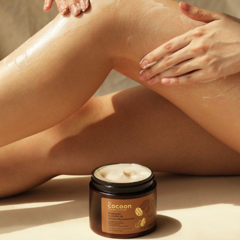 Bơ dưỡng thể cà phê Đắk Lắk Cocoon thuần chay, chất kem sánh mịn như bơ, mềm mịn như nhung và thấm nhanh như tan vào da, để lại cảm giác mềm mịn và một mùi thơm thoang thoảng rất "ngon" tựa như mùi thơm khó cưỡng.