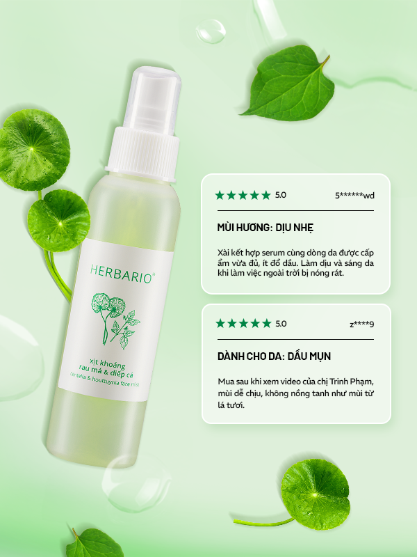 Xịt khoáng rau má và diếp cá ổn áp ko gây kích ứng da, hiệu quả thì phải sử dụng lâu dài da mới khoẻ lên chứ ko phải như dạng treatment. Xịt khoáng thơm