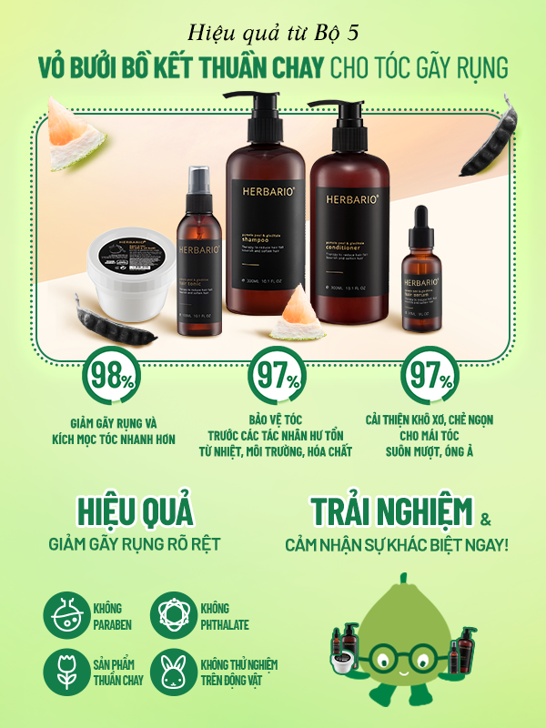 Công dụng bộ 5 chăm sóc tóc vỏ bưởi & bồ kết Herbario