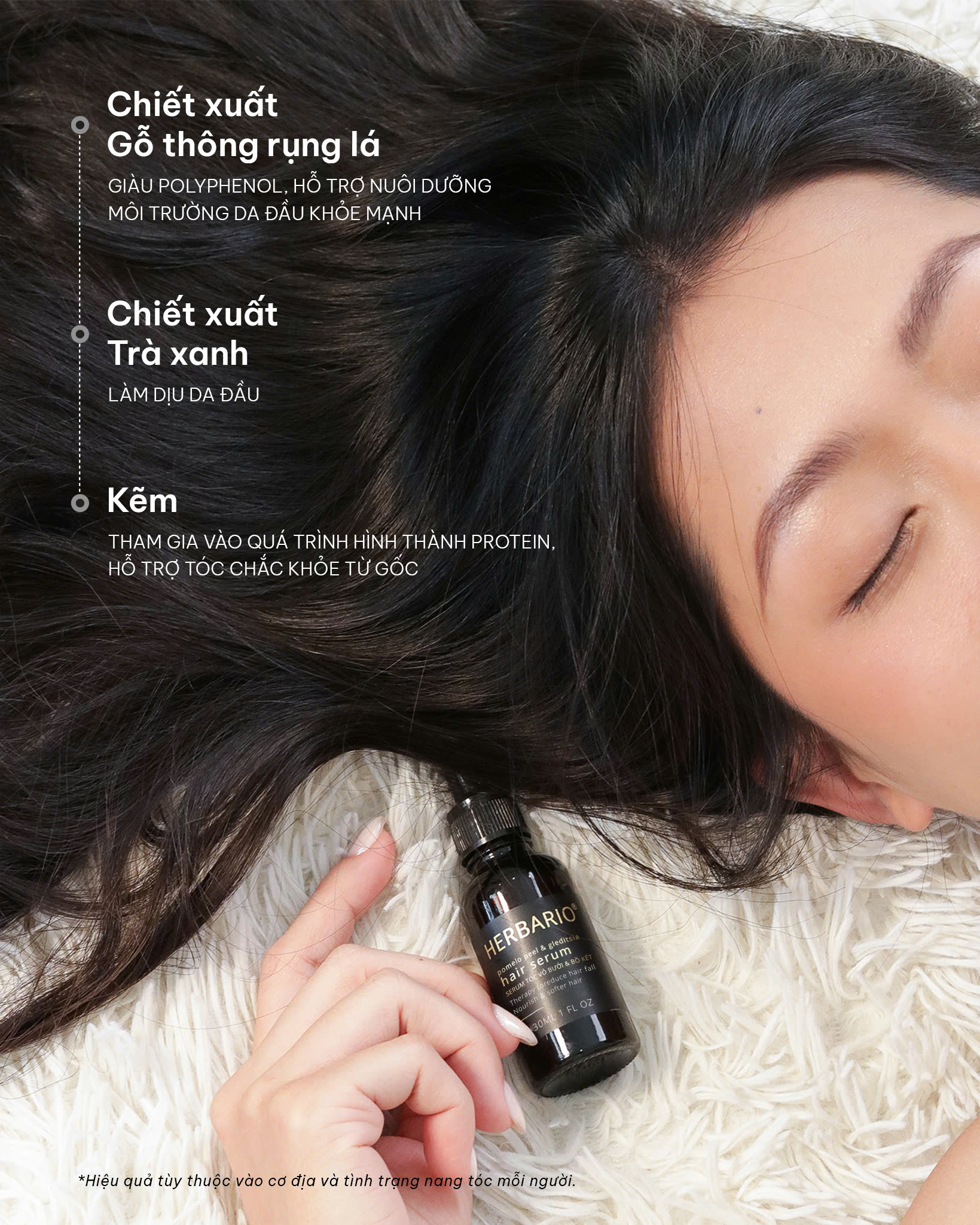 • SERUM: Bôi trực tiếp lên chân tóc mát-xa nhẹ nhàng để dưỡng chất thấm sâu. Dùng ngày 2 lần để đặt hiệu quả tốt nhất. Kết hợp nước dưỡng tóc vỏ bưởi và bồ kết herbario để chăm sóc từ thân đến ngọn.