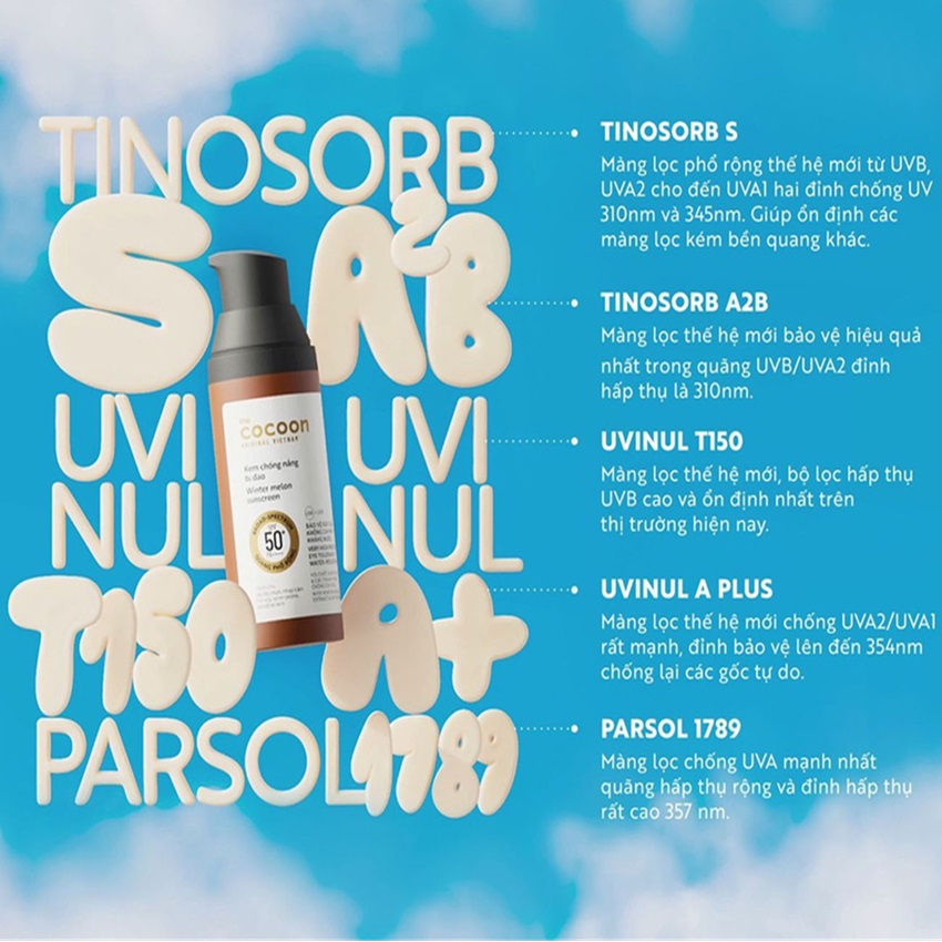 Màng lọc tiên tiến chống bức xạ UVA, UVB của kem chống nắng Cocoon