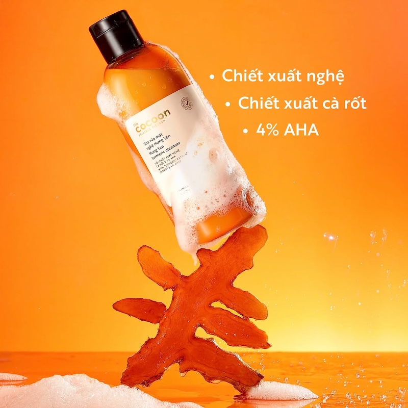 Sữa rửa mặt nghệ Hưng Yên là sản phẩm 100% thuần chay, thành phần chủ đạo từ thực vật Việt Nam, thân thiện với làn da, hiệu quả và lành tính. Cocoon cam kết sản phẩm: