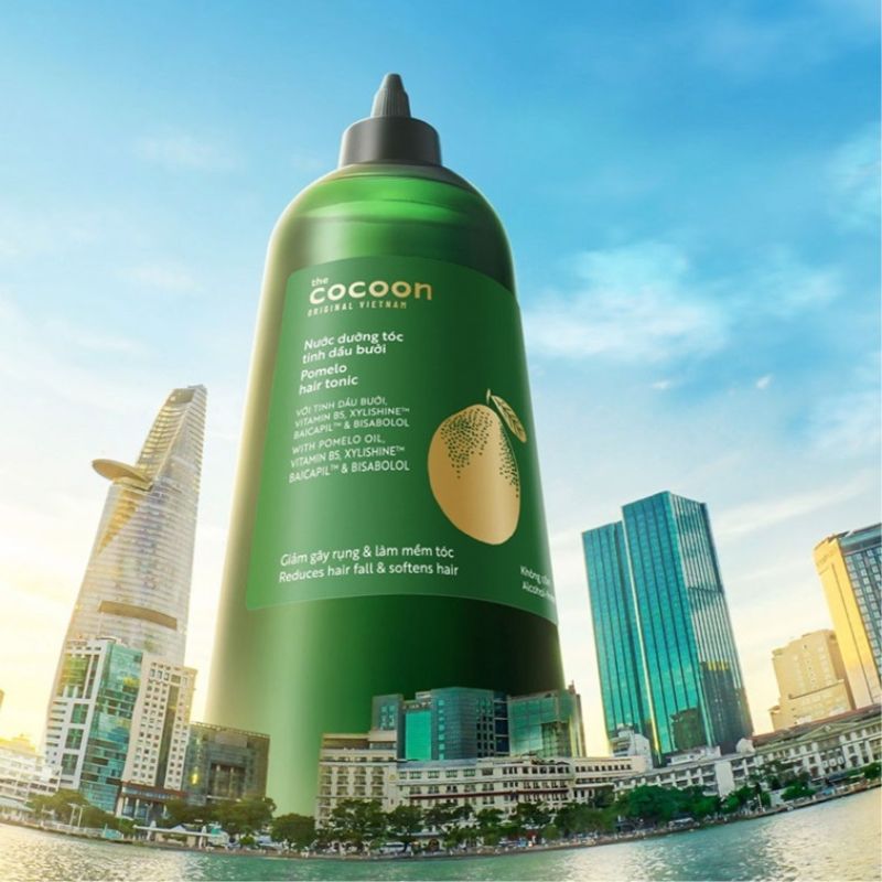 Nước dưỡng tóc tinh dầu bưởi pomelo Cocoon thuần chay phiên bản cải tiến là sản phẩm treatment dành cho tóc, phù hợp với tình trạng tóc rụng, tóc yếu, tóc thưa mỏng. Sản phẩm có thành phần từ tinh dầu bưởi Việt Nam truyền thống, Xylishine, Vitamin B5, Baicapil và Bisabolol. Nước dưỡng tóc tinh dầu bưởi giúp ngăn ngừa 60% nguyên nhân rụng tóc, làm gia tăng mật độ của tóc, từ đó giúp tóc dày lên trông thấy. Đồng thời, sản phẩm còn giúp nuôi dưỡng da đầu và cung cấp độ ẩm cho tóc.