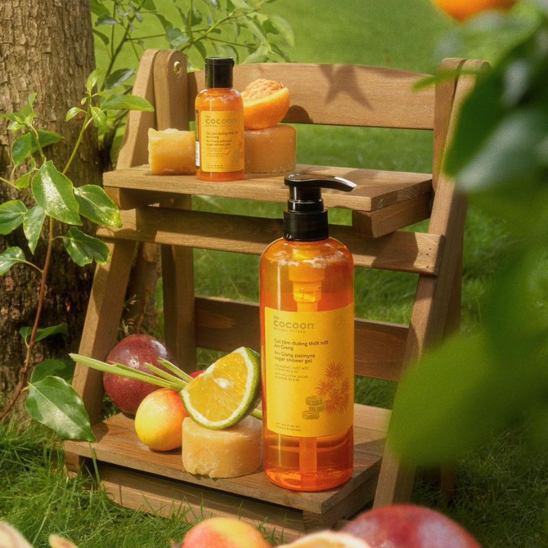 Từ những tinh thể đường thốt nốt An Giang nhuyễn mịn, giàu chất ngăn ngừa oxy hóa và khoáng chất, kết hợp cùng vitamin B5 và B3, gel tắm đường thốt nốt An Giang nhẹ nhàng làm sạch, bổ sung độ ẩm, giúp làn da luôn mềm mại, sáng mịn và tràn đầy sức sống. Hương thơm tươi mát, thư giãn mang lại cảm giác bừng tỉnh, như được thiên nhiên vỗ về sau một ngày dài.