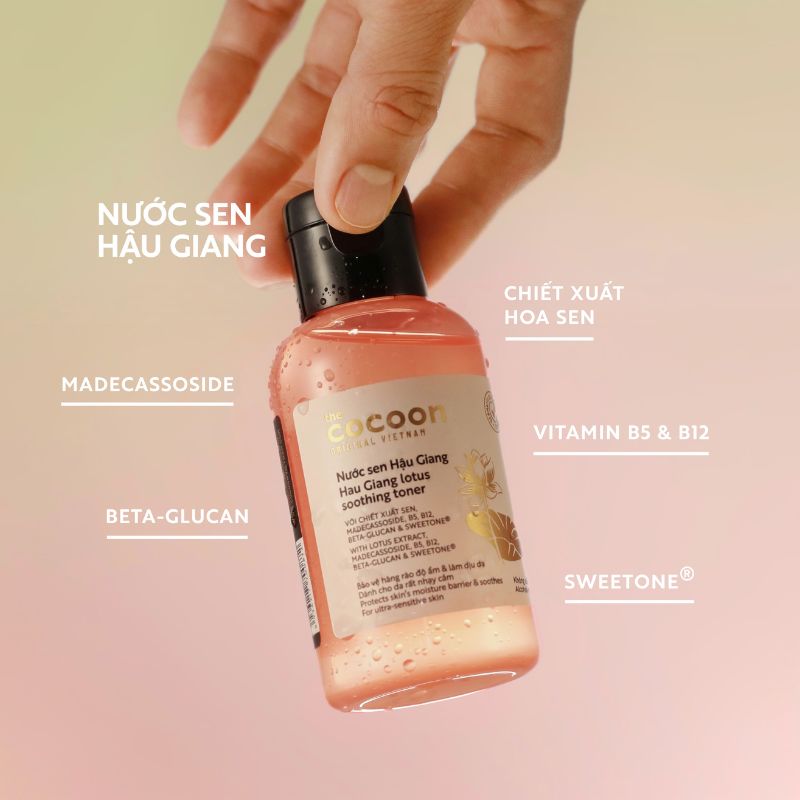 Khai thác sức mạnh từ những đoá sen tinh khiết từ vùng đất Hậu Giang kết hợp cùng các hoạt chất khoa học tiên tiến gồm Madecassoside, vitamin B5, B12, Beta-glucan (prebiotic) và Sweetone® (chiết xuất quả ngũ vị tử), nước sen Hậu Giang dịu lành giúp bảo vệ hàng rào độ ẩm của làn da nhạy cảm, giảm mẩn đỏ và ngứa do khô ráp, mang lại cho làn da một cảm giác nhẹ nhàng, êm ái như được vỗ về.