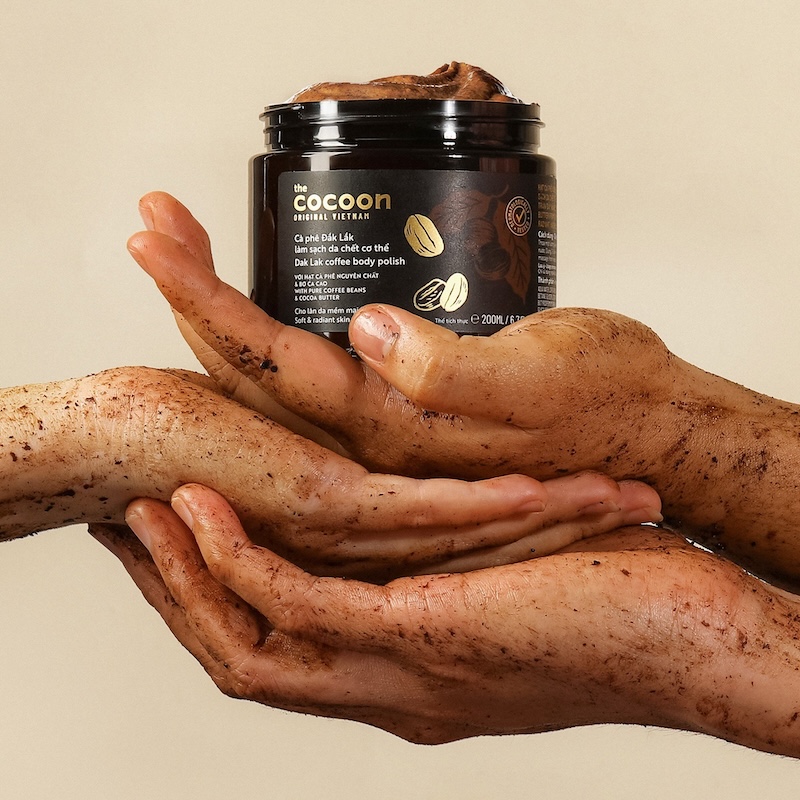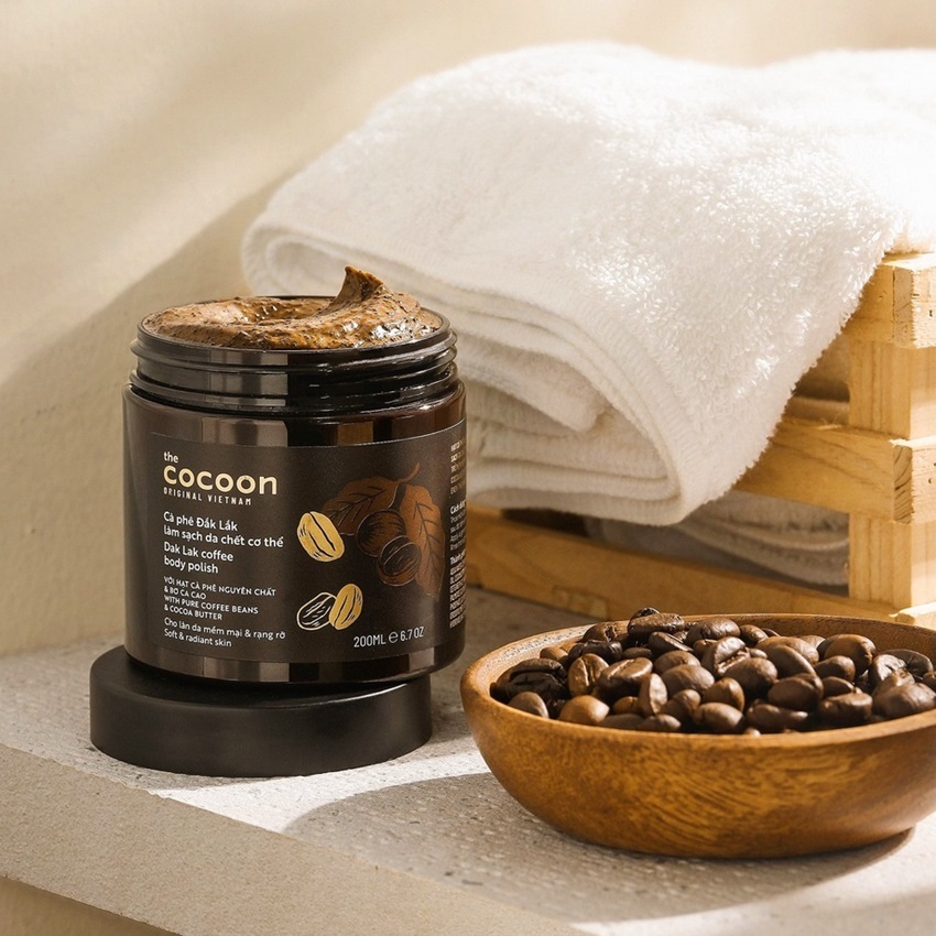 Sản phẩm được tạo từ những hạt cà phê Đăk Lăk nguyên chất xay nhuyễn, hòa quyện cùng bơ cacao Tiền Giang giúp loại bỏ tế bào chết hiệu quả, làm đều màu da, mang lại năng lượng, giúp da trở nên mềm mại và rạng rỡ.