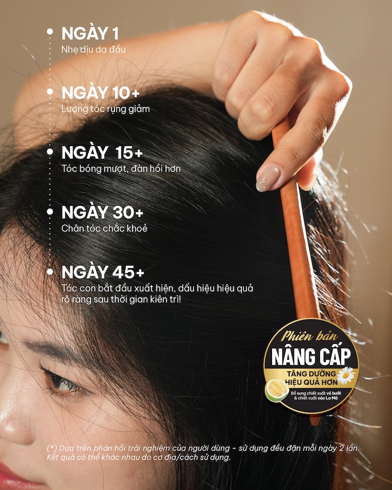 - Cơ chế tác động kép (Double Action): Lần đầu tiên kết hợp Tinh dầu & Chiết xuất Vỏ Bưởi trong cùng một công thức, thay vì chỉ dùng tinh dầu đơn thuần như trước, giúp nhân đôi sức mạnh nuôi dưỡng nang tóc.